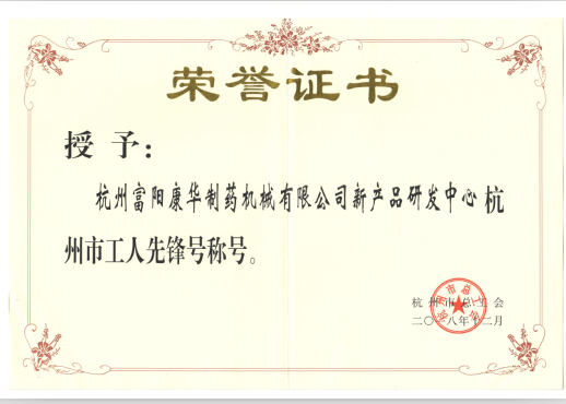 我公司新產(chǎn)品研發(fā)中心被評為2018年度杭州市“工人先鋒號”。