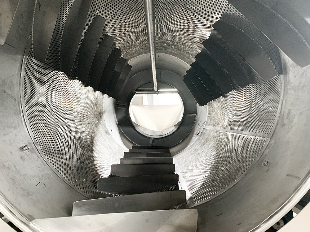 物料由進(jìn)料斗送入,啟動(dòng)高壓水泵、轉(zhuǎn)動(dòng)筒體,物料在被筒體內(nèi)螺旋板推進(jìn)的同時(shí)進(jìn)行漂洗、噴淋和高壓水沖洗。