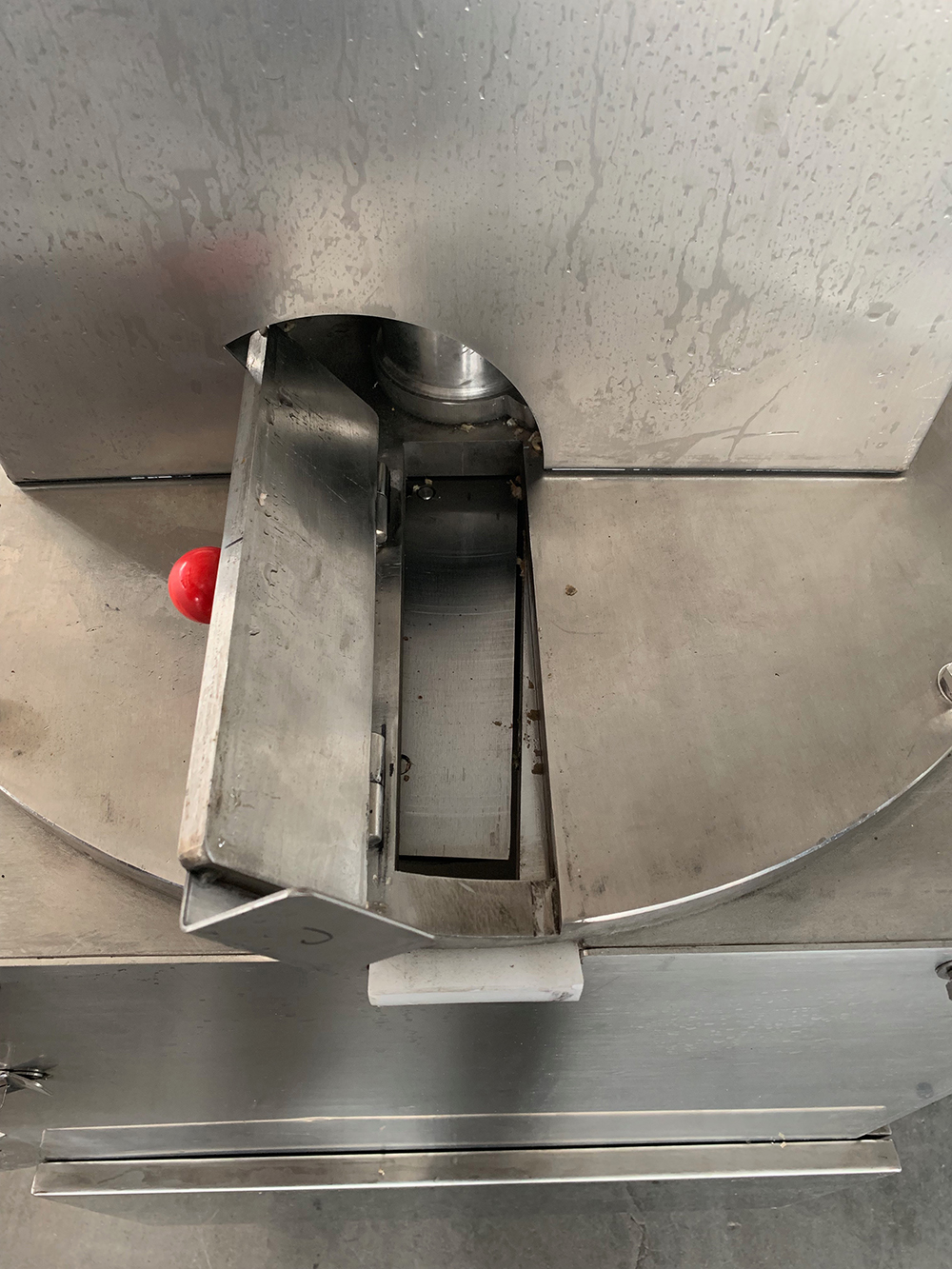 工作原理:將物料放入相應進料斗,氣缸自動壓料,切刀固定于轉盤正面,轉盤與切刀的合適間隙通過伺服電機控制刀盤上下調節(jié),當電機帶動刀盤,將物料切成片狀。配有水槍噴霧裝置,使刀片切制藥材不容易粘刀,片形更好。