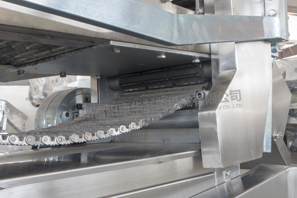 采用不銹鋼鏈條連續(xù)輸送物料,操作簡單,生產(chǎn)效率高;該機(jī)具有運(yùn)轉(zhuǎn)平穩(wěn)、噪音低、維修方便等特點(diǎn),符合GMP要求。
