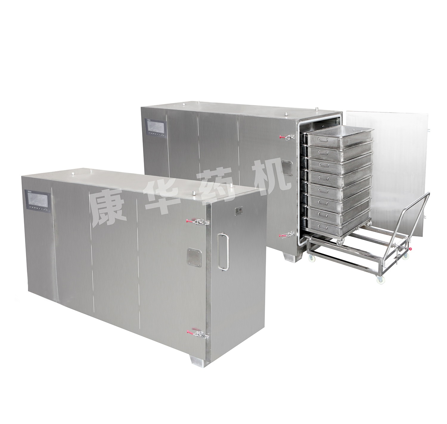 It has the advantages of fast speed and avoiding the loss of active ingredients, etc. The effective volume ratio of the square box reaches 98%. The processes of startup (opening and closing of valves), sealing of the box, vacuuming, vacuum degree control, steaming and moistening, and shutdown are all automatically completed.
